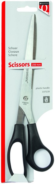 • Voor krachtig en nauwkeurig knipwerk kies je de schaar Quantore 250mm + plastic handvat zwart. Deze extra lange schaar is ontworpen voor serieuze kniptaken waarbij controle en duurzaamheid centraal staan. Met titanium-coated roestvrijstalen messen biedt deze schaar langdurige scherpte en superieure snijkracht, zelfs bij zwaardere materialen. De echte schroef zorgt voor instelbare bladspanning, afgestemd op jouw knipbehoefte. De ergonomisch gevormde kunststof handvaten bieden een stevige grip en langdurig comfort – ideaal voor intensief gebruik op school, in het atelier of thuis. Quantore combineert efficiëntie, duurzaamheid en comfort in één betrouwbare schaar.Kenmerken: