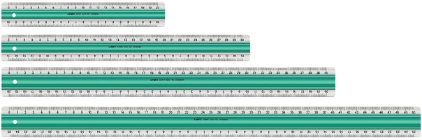 • 20 en 30cm versie met rubberen strip en acrylstrip waardoor de liniaal niet gekanteld en geschoven kan worden.