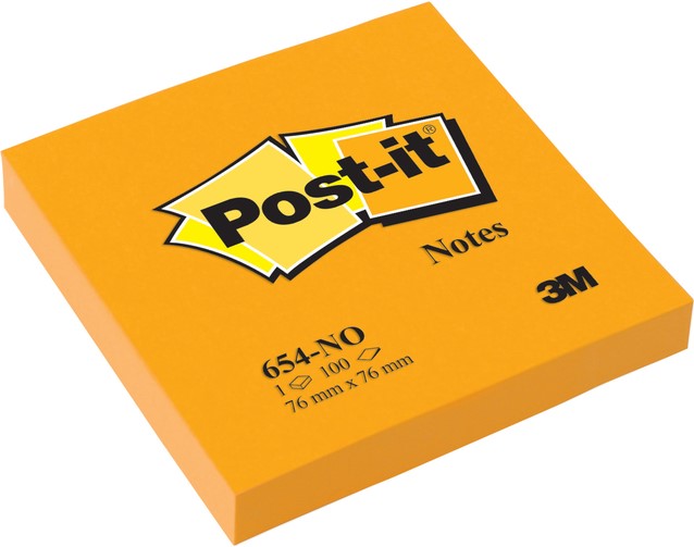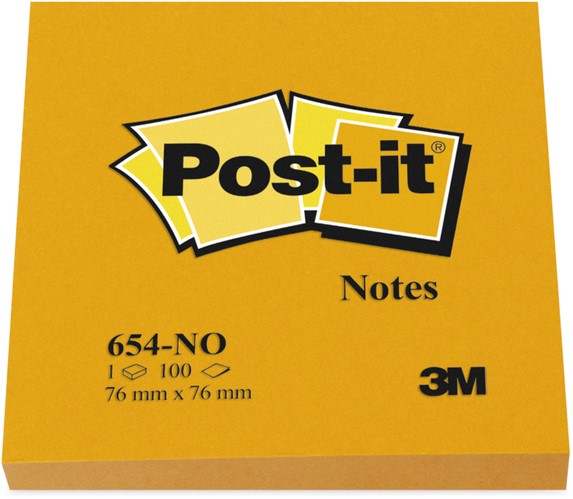 Memoblok Post-it 654 76x76mm oranje 100 vel
