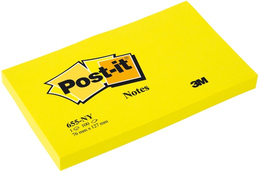 Memoblok Post-it 655 76x127mm 100 vel per blok neon geel