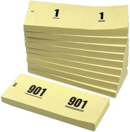 Nummerblok 42x105mm nummering 1-1000 geel 10 stuks