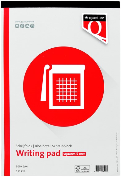 Schrijfblok Quantore A4 ruit 5mm 100vel 60gr