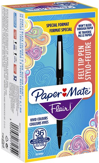 Fineliner Paper Mate Flair Original medium zwart valuepack à 36 stuks