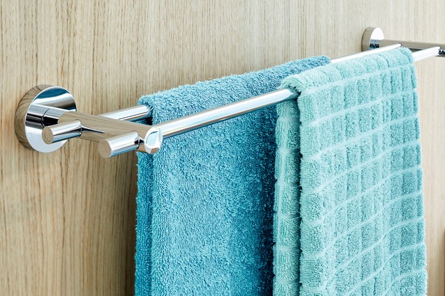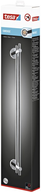 • Mooi in zijn minimalistische elegantie, de tesa® Smooz handdoekhouder heeft een hoogglans verchroomde afwerking en is op zijn plek in elke badkamer.