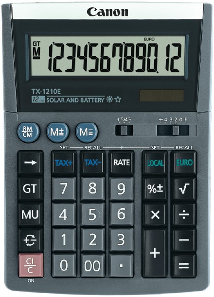 • De TX-1210E is een 12-cijferige bureaucalculator met een groot, verticaal gekanteld display.
