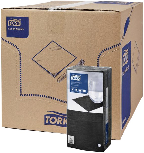 Cocktailservet Tork Advanced 1/4 vouw 2-laags 238x238mm 200 vel zwart 477829
