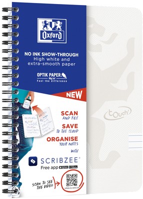 Spiraalblok Oxford Touch A5 lijn 140 pagina's 80gr lichtgrijs