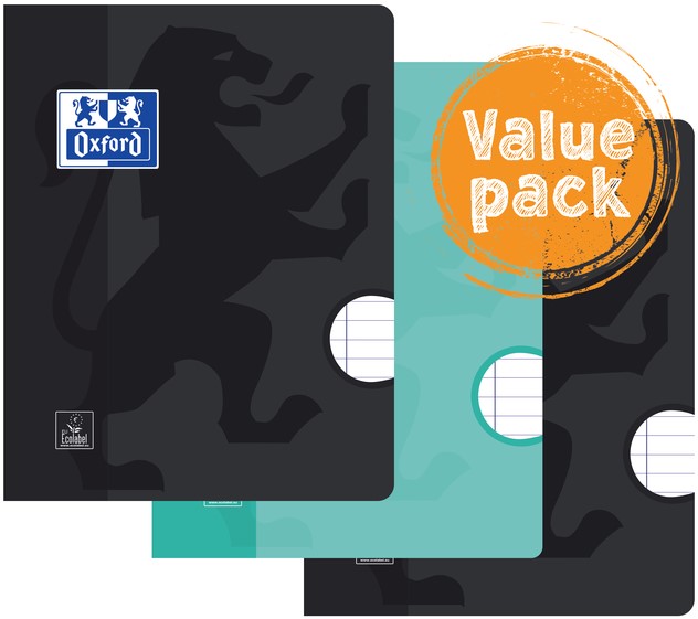 Schrift Oxford School A4 lijn 72 pagina's 80gr assorti pak à 3 stuks