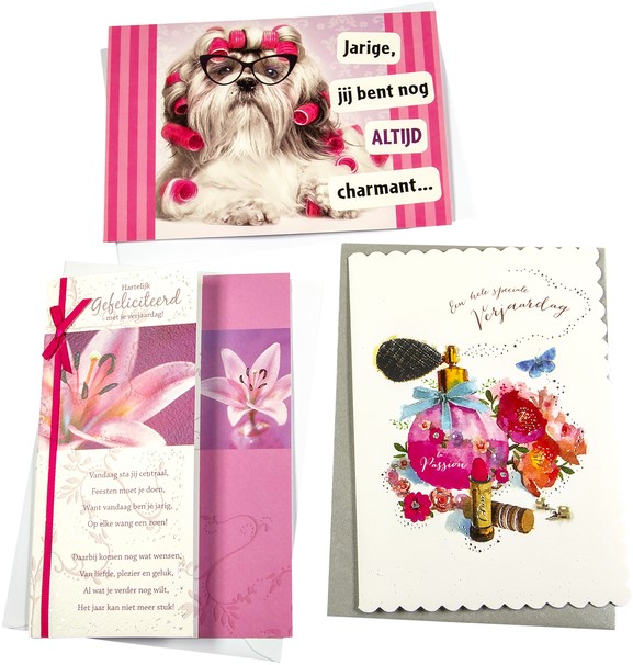 Wenskaart Paperclip verjaardag vrouw navulset à 6 stuks