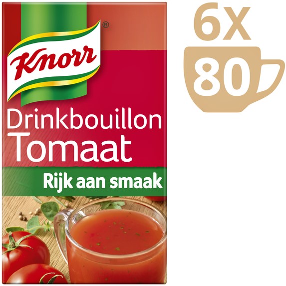 • Knorr Drinkbouillon tomaat is een heerlijke krachtige bouillon, voorzien van een verfijnde smaak door de toevoeging van vele kruiden.