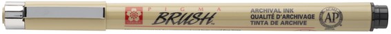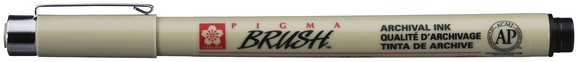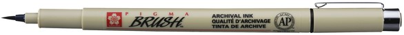 • Sakura Pigma Brush met een flexibele penseelpunt om lijnen te tekenen of vlakken in te kleuren.