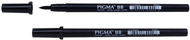 • Deze Pigma Brush Pen BB bevat een brede penseelpunt, waarmee je brede strepen kunt creëren.
