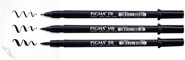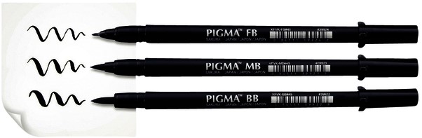 • Pigma Brush Pen komt ook in puntdiktes FB (fijn) en MB (medium).