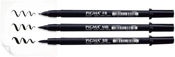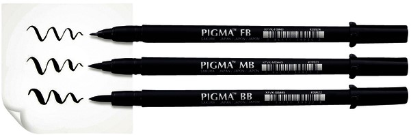 • Pigma Brush Pen komt ook in puntdiktes FB (fijn) en BB (breed).