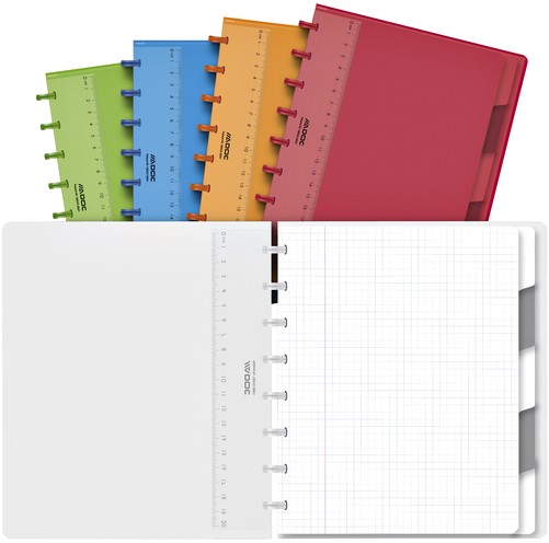 • A5 ADOC ringschrift met 144 geruite (5x5mm) bladzijden van extra wit 90gr PEFC schrijfpapier waarop iedere pen zich thuis voelt en met 5 tabbladen, die door de 8 ADOC ringen eenvoudig van positie kunnen gewisseld, toegevoegd of weggenomen worden.