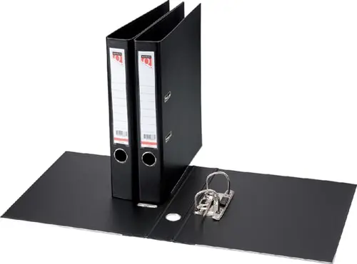 • Maak je werkplek efficiënter met de Quantore ordner in de kleur zwart. Dankzij de hefboommechaniek berg je tot 350 vellen A4-papier moeiteloos op. De ordner is volledig bekleed met duurzaam polypropyleen, zowel aan de binnen- als buitenkant, waardoor hij bestand is tegen slijtage en eenvoudig schoon te houden is. Het insteekbare rugetiket maakt het eenvoudig om je administratie snel te herkennen en te ordenen. Extra versteviging komt in de vorm van een metalen grijpgat en randbeschermers, terwijl slimme sleuven in de kaft zorgen voor optimale stabiliteit. Kenmerken:
