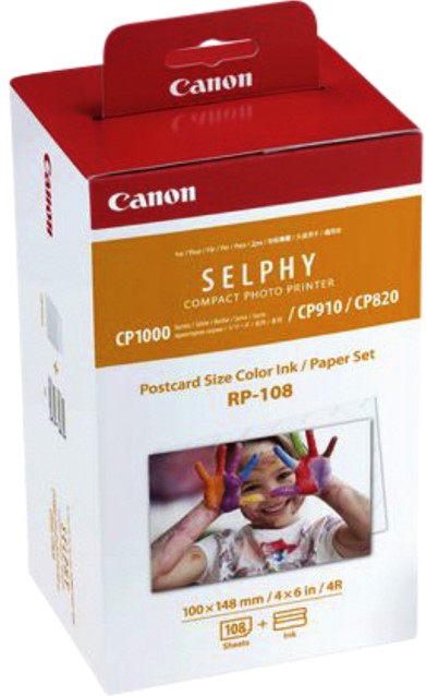 • De Canon RP-108 Ink Cassette/Paper Set bevat inkt en fotopapier waarmee je maximaal 108 prints van het standaardbriefkaart 10x15 cm kunt printen.